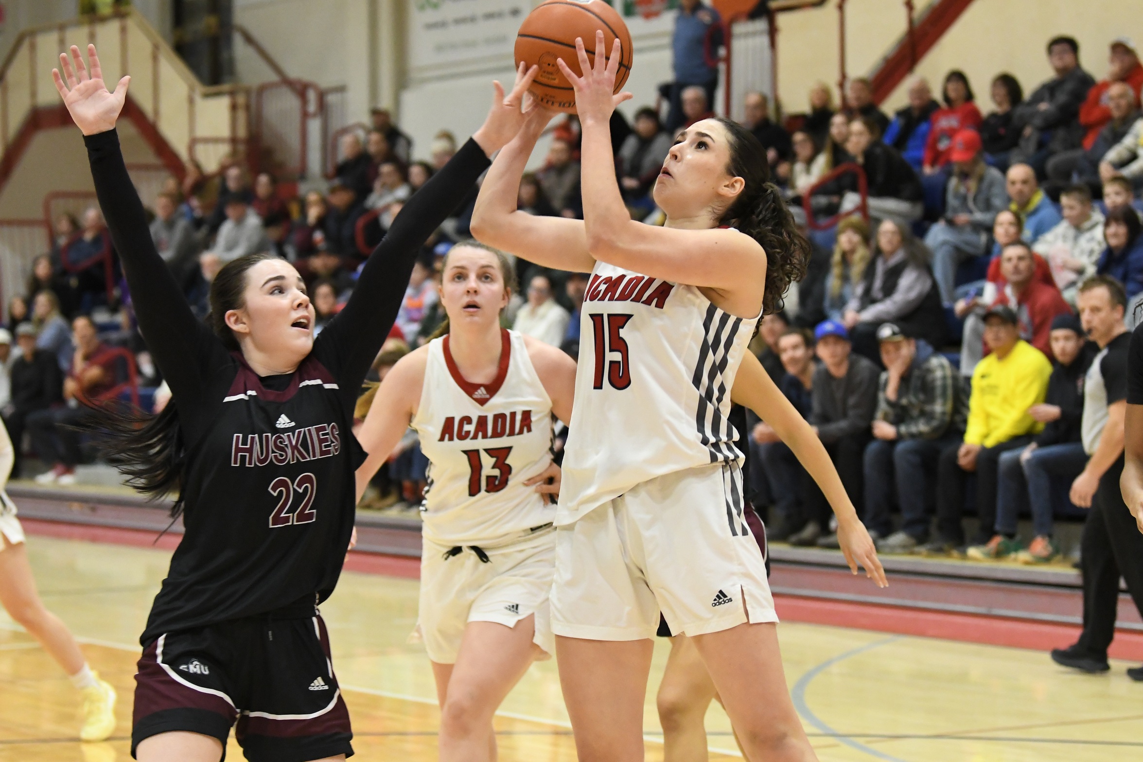 Samantha Russell led Acadia with 17 points and four steals. Bianca Helmig added nine points, nine assists and seven rebounds. Sarah Delorey finished with 15 points, three blocks and three steals. Taya Dixon recorded eight points and nine rebounds.
