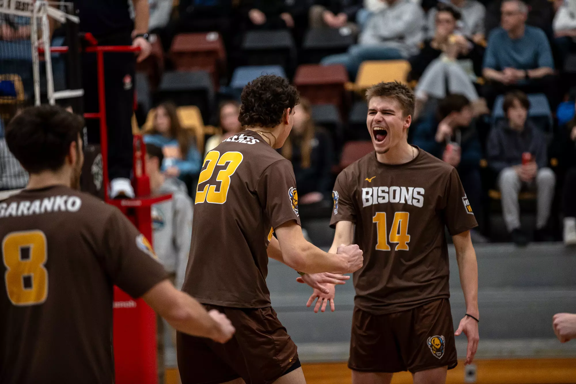 Five different Bisons recorded at least eight kills, including middles Jonah Dueck and Jordon Heppner, who combined for 24, with just two total errors, while hitting above .500 combined. Owen Weekes led the attack with 17 kills, and the hosts had six aces.