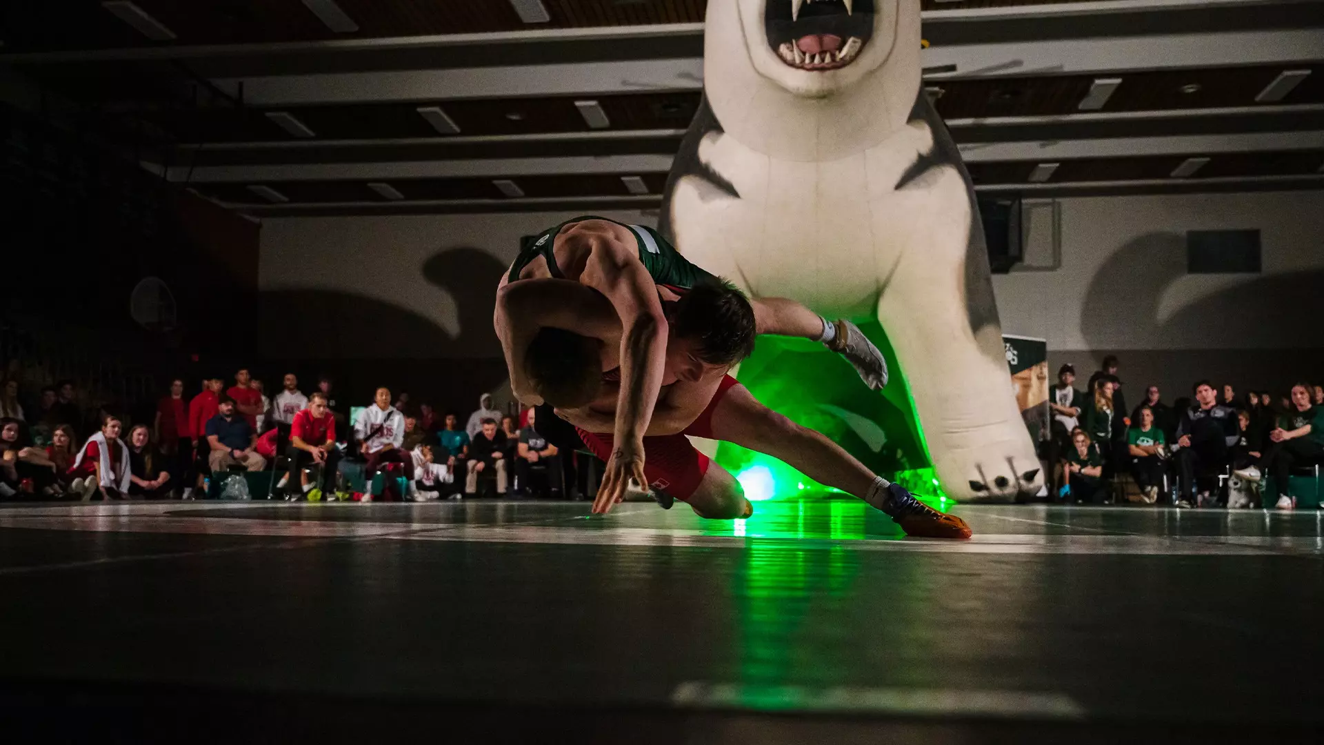 In men's competition, the Dinos won four of the nine weight classes. Mark Schwichtenberg (76kg), Joseph De Maio (90kg) and Connor Bren (100kg) all won by pin while Brantley Saar earned a win by tech fall.